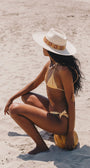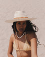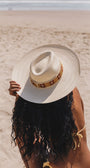 From our woven strip collection, Arezzo adds new elements and color to our traditional Malibu Natural. Headband and hat string all hand-woven in colored straw. Original panama hat with the greenpacha seal.